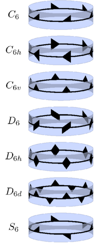 | 12 | D6, C6v, D3d, D3h | Dih6 = Dih3 × Z2 | 7 | |