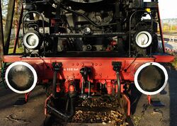 A headstock of a rail vehicle is a transverse structural member located at the extreme end of the vehicle's underframe. The headstock supports the coupling at that end of the vehicle, and may also support buffers, in which case it may also be known as a buffer beam.[1] The headstocks form part of the underframe of a locomotive or a railroad car. The headstocks of locomotives, railcars and cabcars also support headlamps and the hoses for air brakes, vacuum brakes as well as the cables for train control and head end power.
