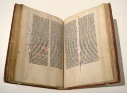 All three Trotula texts circulated for several centuries as independent texts. Each is found in several different versions, likely due to the interventions of later editors or scribes.[18] Already by the late 12th century, however, one or more anonymous editors recognized the inherent relatedness of the three independent Salernitan texts on women's medicine and cosmetics, and so brought them together into a single ensemble. In all, when she surveyed the entire extant corpus of Trotula manuscripts in 1996, Green identified eight different versions of the Latin Trotula ensemble. These versions differ sometimes in wording, but more obviously by the addition, deletion, or rearrangement of certain material.[18] The so-called "standardized ensemble" reflects the most mature stage of the text, and it seemed especially attractive in university settings.[19] A survey of known owners of the Latin Trotula in all its forms showed it not simply in the hands of learned physicians throughout western and central Europe, but also in the hands of monks in England, Germany, and Switzerland; surgeons in Italy and Catalonia; and even certain kings of France and England.[20]