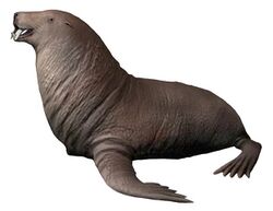 Pinnipeds are marine mammals that evolved from arctoid carnivorans that includes seals, eared seals, and walruses. There are 34 recent species of pinnipeds[1] and 102 species of fossil pinnipeds and their stem-relatives (Pinnipedimorpha).[2] Scientists still debate on which lineage of arctoid carnviroans are the closest relatives to the pinnipedimorphs, being either more closely related to bears or to musteloids.[3][4][5][6][7] Two stem-pinniped families found outside of Pinnipedimorpha, Amphicynodontidae and Semantoridae, were in the past considered to be subfamilies of Ursidae and Mustelidae respectively.[8] In comparison to the two other major groups or marine or sea mammals, cetaceans and sirenians, pinnipeds are a relatively younger group having appeared about 24 to 38 million years ago and are still able to return on land to breed.