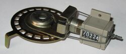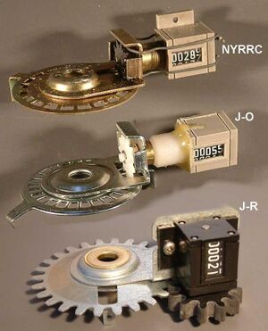 The Jones Counter is a type of bicycle odometer which adds the function of a surveyor's wheel to a bicycle. It was developed in 1971 by Alan Jones to accurately measure the length of road running race courses.[1] The counter has gears that drive a mechanical digital counter. One count typically corresponds to about 1/20 of a wheel revolution (this varies if a different gear ratio is used); this provides a resolution of about 10 cm in course length, although overall accuracy, depending on calibration and other factors, is lower, but normally better than 1 part in 1,000.