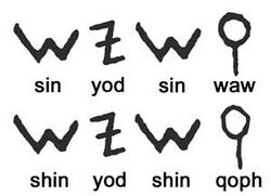 Most Egyptologists accept Shishaq as an alternative name for Shoshenq I.[10][11][12] Rohl disputes that Shoshenq's military activity fits the biblical account of Shishaq on the grounds that the two kings' campaigns are completely different and Jerusalem does not appear in the Shoshenq inscription as a subjected town.[13] He also points out that Ramesses did campaign against Israel and that he had a short form of his formal name which was in use in Palestine.[14] That name was Sysw, whilst the early Hebrew alphabet did not distinguish between S and SH, so the biblical name may have originally been Sysq. Rohl has also argued that the qoph ending may be a later misreading of the early sign for waw which in the tenth century was identical to the seventh century sign for qoph. Thus 7th century Sysq may have been a mistaken later reading of tenth-century Sysw.[15]