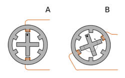 In magnetic motors, magnetic fields are formed in both the rotor and the stator. The product between these two fields gives rise to a force and thus a torque on the motor shaft. One or both of these fields changes as the rotor turns. This is done by switching the poles on and off at the right time, or varying the strength of the pole.