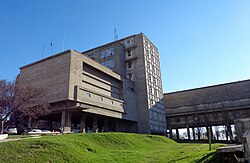 Hospital de Clínicas "Dr. Manuel Quintela" is a University Hospital attached to the University of the Republic, and is located on Avenida Italia. It functions as an adult general polyclinic and hospital. The building was designed by architect Carlos Surraco in 1928–1929 and has a surface area of 110,000 square meters (1,200,000 sq ft) on 23 floors. The hospital was inaugurated 21 September 1953. For many years it was led by Dr. Hugo Villar, who was a considerable influence on the institution.