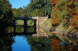 Estadio Centenario, the national football stadium in Parque Batlle, was opened in 1930 for the first World Cup, as well as to commemorate the centennial of Uruguay's first constitution. In this World Cup, Uruguay won the title game against Argentina by 4 goals to 2.[150] The stadium has 70,000 seats.[91] It is listed by FIFA as one of the football world's classic stadiums, along with Maracanã, Wembley Stadium, San Siro, Estadio Azteca, and Santiago Bernabéu Stadium.[151] A museum located within the football stadium has exhibits of memorabilia from Uruguay's 1930 and 1950 World Cup championships. Museum tickets give access to the stadium, stands, locker rooms and playing field.[77]