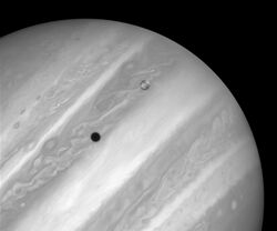 Spacecraft can be used to observe the solar eclipses on Jupiter; these include Pioneer 10 and Pioneer 11 (1973 and 1974), Voyager 1 and Voyager 2 (1979), Galileo orbiter (1995–2003), Cassini–Huygens (2000), New Horizons (2007), and Juno (2016-present) observed the transits of their moons and its shadows.