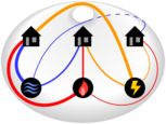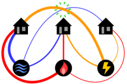 [math]\displaystyle{ K_{3,3} }[/math] is a graph with six vertices and nine edges, often referred to as the utility graph in reference to the problem.[1] It has also been called the Thomsen graph after 19th-century chemist Julius Thomsen. It is a well-covered graph, the smallest triangle-free cubic graph, and the smallest non-planar minimally rigid graph.