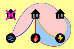A review of the history of the three utilities problem is given by (Kullman 1979). He states that most published references to the problem characterize it as "very ancient".[2] In the earliest publication found by Kullman, Henry Dudeney (1917) names it "water, gas, and electricity". However, Dudeney states that the problem is "as old as the hills...much older than electric lighting, or even gas".[3] Dudeney also published the same puzzle previously, in The Strand Magazine in 1913.[4] A competing claim of priority goes to Sam Loyd, who was quoted by his son in a posthumous biography as having published the problem in 1900.[5]