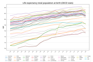 Switzerland has an infant mortality rate of about 3.6 out of 1,000. The general life expectancy in 2012 was for men 80.5 years compared to 84.7 years for women.[55] These are the world's best figures.[56]