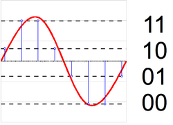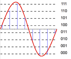 An analog-to-digital converter (ADC) can be modeled as two processes: sampling and quantization. Sampling converts a time-varying voltage signal into a discrete-time signal, a sequence of real numbers. Quantization replaces each real number with an approximation from a finite set of discrete values. Most commonly, these discrete values are represented as fixed-point words. Though any number of quantization levels is possible, common word-lengths are 8-bit (256 levels), 16-bit (65,536 levels) and 24-bit (16.8 million levels). Quantizing a sequence of numbers produces a sequence of quantization errors which is sometimes modeled as an additive random signal called quantization noise because of its stochastic behavior. The more levels a quantizer uses, the lower is its quantization noise power.