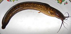 Clarias is a genus of catfishes (orderSiluriformes) of the family Clariidae, the airbreathing catfishes. The name is derived from the Greekchlaros, which means lively, in reference to the ability of the fish to live for a long time out of water.[1]