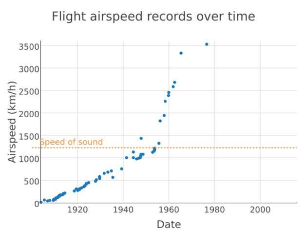 | 12 November 1906 | 25.65 | 41.292 | Santos-Dumont 14-bis | Bagatelle Castle, Paris, France | First officially recognized airspeed record.[2][3]:7 | |
