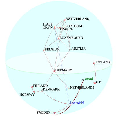 Bayesian network — a graph in which cause and effect are measured probabilisticly instead of geometricly as in correlation iconography.