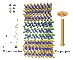 Example schematic of the first field free Josephson diode using NbSe2 and Nb3Br8.[3]