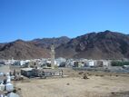 Medina is a desert oasis surrounded by the Hejaz Mountains and volcanic hills. The soil surrounding Medina consists of mostly basalt, while the hills, especially noticeable to the south of the city, are volcanic ash which dates to the first geological period of the Paleozoic Era. It is surrounded by a number of famous mountains, most notably Jabal Al-Hujjaj (The Pilgrims' Mountain) to the west, Sal'aa Mountain to the north-west, Jabal al-'Ir or Caravan Mountain to the south and Mount Uhud to the north. The city is situated on a flat mountain plateau at the tripoint of the three valleys (wadis) of Wadi al 'Aql, Wadi al 'Aqiq, and Wadi al Himdh, for this reason, there are large green areas amidst a dry deserted mountainous region.[5]