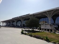 Medina is served by the Prince Mohammad bin Abdulaziz International Airport located off Highway 340. It handles domestic flights, while it has scheduled international services to regional destinations in the Middle East. It is the fourth-busiest airport in Saudi Arabia, handling 8,144,790 passengers in 2018.[67] The airport project was announced as the world's best by Engineering News-Record's 3rd Annual Global Best Projects Competition held on 10 September 2015.[68][69] The airport also received the first Leadership in Energy and Environmental Design (LEED) Gold certificate in the MENA region.[70] The airport receives higher numbers of passengers during the Hajj.