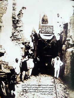 The historic Ottoman Hejaz railway was abandoned following World War One and the Medina railway station was converted into a museum by the Saudi government. The Haramain High Speed Railway (HHR) came into operation in 2018, linking Medina and Mecca, and passes through three stations: Jeddah, King Abdul Aziz International Airport, and King Abdullah Economic City.[77] It runs along 444 kilometers (276 miles) with a speed of 300 km/h, and has an annual capacity of 60 million passengers.[78]