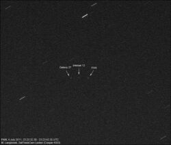 The geostationary satellite PAN (2009-047A), along with two other (commercial) geostationary satellites photographed on 4 July 2011 (photo: Marco Langbroek, Leiden, the Netherlands)