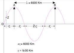 or, [math]\displaystyle{ \lambda = \frac{3 \times 10^5}{50} = 6000 Km }[/math]
