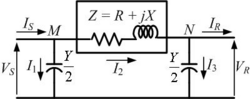 Here, the sending and receiving end voltages are denoted by [math]\displaystyle{ V_S }[/math] and [math]\displaystyle{ V_R }[/math] respectively. Also the currents [math]\displaystyle{ I_S }[/math] and [math]\displaystyle{ I_R }[/math] are entering and leaving the network respectively