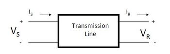Oftentimes, we are only interested in the terminal characteristics of the transmission line, which are the voltage and current at the sending and receiving ends, for performance analysis of the line. The transmission line itself is then modelled as a "black box" and a 2 by 2 transmission matrix is used to model its behaviour, as follows[24][25]