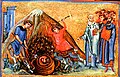 John (right) baptises Jesus beneath a dove, while running at him or about to lose his balance and fall on him. Don't ask me who all those other people are supposed to be.