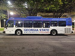 Atlanta's mass transit system, MARTA, provides Georgia State students with access to the system at a reduced rate when bought through the university.[125] Georgia State is served by three MARTA rail stations; the Georgia State Station next to the Petit Science Center on the Blue and Green lines, Five Points Station on the Red, Gold, Blue, and Green lines with accommodations for both the Aderhold Learning Center and main campus, and the Peachtree Center Station on the Red and Gold lines, giving access to the Aderhold Learning Center, the University Commons, and the Piedmont North dormitories.[126]