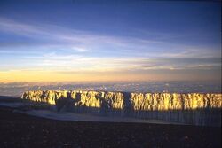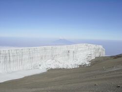 The Furtwangler Glacier on Kilimanjaro is a remnant of the ice cap that once covered the mountain. This has retreated dramatically over the last century with over 80 percent glacial retreat. The glacier is named after Walter Furtwangler, who along with Ziegfried Koenig, was the fourth to ascend to the summit of Kilimanjaro in 1912.[41]