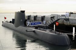 In 2005 Portugal awarded a contract to Howaldtswerke-Deutsche Werft for two Type 214 submarines, which were delivered in 2010. These two submarines, the NRP Tridente and the NRP Arpão, are the only submarines currently in active service with the Portuguese Navy replacing the Albacora-class submarines in 2010.[14][15] In 2014, the two submarines received new UGM-84G Sub-Harpoon Block II missiles.[16] From 2016 to 2018 the Tridente submarine carried out a major mid-term overhaul at Thyssenkrupp Marine Systems shipyards,[17] and the Arpão submarine, from 2018 to 2021 carried out a major mid-term overhaul at the Portuguese Arsenal do Alfeite shipyards[18][19] The Portuguese Military Programming Law signed in May 2019 aims for the modernization of the two submarines by 2030.[20][21]