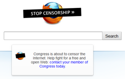 On November 16, 2011, Tumblr, Mozilla, Techdirt, the Center for Democracy and Technology were among many Internet companies that protested by participating in American Censorship Day. They displayed black banners over their site logos with the words "STOP CENSORSHIP."[164]