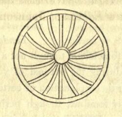 In 1821 the Quarterly Journal of Science, Literature, and The Arts published a "letter to the editor" with the title Account of an Optical Deception. It was dated Dec. 1, 1820 and attributed to "J.M.", possibly publisher/editor John Murray himself.[40] The author noted that the spokes of a rotating wheel seen through fence slats appeared with peculiar curvatures (see picture). The letter concluded: "The general principles on which this deception is based will immediately occur to your mathematical readers, but a perfect demonstration will probably prove less easy than it appears on first sight".[41] Four years later Peter Mark Roget offered an explanation when reading at the Royal Society on December 9, 1824. He added: "It is also to be noticed that, however rapidly the wheel revolves, each individual spoke, during the moment it is viewed, appears to be at rest." Roget claimed that the illusion is due to the fact "that an impression made by a pencil of rays on the retina, if sufficiently vivid, will remain for a certain time after the cause has ceased." He also provided mathematical details about the appearing curvatures.[42]