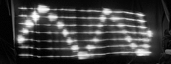 In the 1960s and 1970s a row of computer-controlled light sources attached to a stick was waved back-and-forth or spun (by hand or on a motor) to sequentially "imprint" upon the naked eye (or cameras) images, text, graphics, and graphs (plots of mathematical or recorded or live functions), originally using incandescent lamps at high voltage for quick response, and this system was called S.W.I.M. (Sequential Wave Imprinting Machine).[15][16][17] Originally a radar system was used to track the position of the S.W.I.M. to appropriately index into the content so that if it was waved backwards the content played backwards, and if it was waved faster the content played faster, etc., such as to create "virtual" content overlayed in near perfect alignment with physical reality.[18][19] More modern versions of S.W.I.M. use SDR (Software-Defined Radio) combined with inertial measurement units to track position.[20]