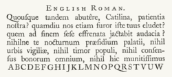 Old Style typefaces are influenced by early Italian lettering design.[36] Modern fonts often exhibit a bracketed serif and a substantial difference in weight within the strokes. Though some argument exists as to whether Transitional fonts exist as a discrete category among serif fonts, Transitional fonts lie somewhere between Old Style and Modern style typefaces. Transitional fonts exhibit a marked increase in the variation of stroke weight and a more horizontal serif compared to Old Style. Slab serif designs have particularly large serifs, and date to the early nineteenth century. The earliest known slab serif font was first shown around 1817 by the English typefounder Vincent Figgins.[37]