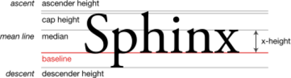 In the Latin, Greek and Cyrillic (sometimes collectively referred to as LGC) scripts, one can refer to the distance from the baseline to the top of regular lowercase glyphs (mean line) as the x-height, and the part of a glyph rising above the x-height as the ascender. The distance from the baseline to the top of the ascent or a regular uppercase glyphs (cap line) is also known as the cap height.[10] The height of the ascender can have a dramatic effect on the readability and appearance of a font. The ratio between the x-height and the ascent or cap height often serves to characterize typefaces.