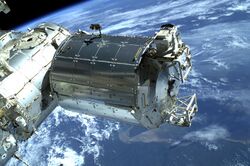 The Japanese Experiment Module (JEM), christened Kibō ("hope") in 1999, is Japan's first crewed spacecraft. Kibō consists of a pressurised laboratory dedicated to advanced technology experiments, education and art, a cargo bay, an unpressurised pallet for vacuum experiments in space, a robotic arm, and an interorbital communication system. While the proposed space station was redesigned many times around Kibō, the only significant change has been the placement of its ballistic shielding. Its final position at the front of the station increases the risk of damage from debris. The ESA and NASA, by contrast, both reduced the size of their laboratories over the course of the programme. The Japanese National Space Development Agency (NASDA) formally submitted the JEM proposal to NASA in March 1986, and by 1990 design work began.[2][9][10] Constructed in the Tobishima Plant of Nagoya Aerospace Systems Works, by Mitsubishi Heavy Industries, Ltd., Kibō made its way to the Tsukuba Space Center and in 2003 Kibō was shipped, first by river barge and then by ship, to America. In 2010, Kibō won the Good Design Award, a 67-year-old consumer and industry award which identifies the best of Japanese craftsmanship.[11][9]