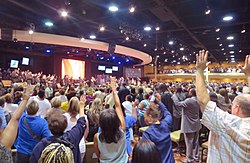 The US is not alone in hosting the megachurch phenomenon. Australia, unfortunately, also has to put up with the likes of Hillsong Church in Sydney's western suburbs,[9] which has the same sort of mass media machine as its American counterparts, most famously the worship band Hillsong United, which grew out of their youth ministry and whose success reaches internationally. It also has the same sort of scandals — financial shadiness, sexual abuse, lying for Jesus, support for Australia's religious right, and most bizarrely, vote-stacking on Australian Idol to ensure that church-sanctioned contestants won.[10] South Korea also has to deal with them, playing host to four of the ten largest megachurches in the world, including the largest, the Yoido Full Gospel Church in Seoul with a membership of over 830,000 people and a head pastor whose record of scandal is not too dissimilar to his American counterparts.[11] In Brazil, meanwhile, evangelical Pentecostals in the American mold have grown into a major force in the nation's political and religious culture, supporting the right-wing candidacy of Jair Bolsonaro and flaunting extravagant wealth (including a church in São Paulo modeled after the Temple of Solomon) in order to lure in new parishioners with promises that (you guessed it) God will make them rich — an enticing prospect in a nation gripped by economic crisis.[12] Perhaps due to the Philippines' legacy as a former American colony and subsequent influence in the country's culture, megachurches are also a notable minority amid the predominantly Roman Catholic population. The Iglesia ni Cristo is considered by critics to fall under the megachurch banner in terms of business practices, and Apollo Quiboloy's Kingdom of Jesus Christ also gained notoriety both for its lavish facilities and the antics of its founder.