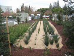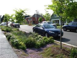 EPA supported the city of Emeryville, California in the development of "Stormwater Guidelines for Green, Dense Redevelopment."[116] Emeryville, which is a suburb of San Francisco, began in the 1990s reclaiming, remediating and redeveloping the many brownfields within its borders. These efforts sparked a successful economic rebound. The city did not stop there, and decided in the 2000s to harness the redevelopment progress for even better environmental outcomes, in particular that related to stormwater runoff, by requiring in 2005 the use of on-site GI practices in all new private development projects. The city faced several challenges, including a high water table, tidal flows, clay soils, contaminated soil and water, and few absorbent natural areas among the primarily impervious, paved parcels of existing and redeveloped industrial sites. The guidelines, and an accompanying spreadsheet model, were developed to make as much use of redevelopment sites as possible for handling stormwater. The main strategies fell into several categories: