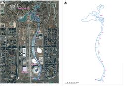 A good example of green infrastructure principles being applied at landscape scale is the Beijing Olympic site. First developed for the 2008 Summer Olympics but used also for the 2022 Winter Olympics, the Beijing Olympic site covers a large area of brownfield redevelopment in the northern sector of the city between the 4th and 5th ring roads. The central green infrastructure feature of the Olympic site is the "Dragon-shaped river" – a complex of retention basins and wetlands covering more than a half million square metres configured to look from the air like a traditional Chinese dragon.