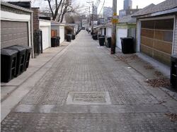 The Trust for Public Land is working in partnership with the City of Los Angeles' Community Redevelopment Agency, Bureau of Sanitation, the University of Southern California's Center for Sustainable Cities, and Jefferson High School by converting the existing 900 miles of alleys in the city to green alleys.[71] The concept is to re-engineer existing alleyways to reflect more light to mitigate heat island effect, capture storm water, and make the space beautiful and usable by the neighboring communities.[71] The first alley, completed in 2015, saved more than 750,000 gallons in its first year.[72] The Green alleys will provide open space on top of these ecological benefits, converting spaces which used to feel unsafe, or used for dumping into a playground, and walking/biking corridor.[73]