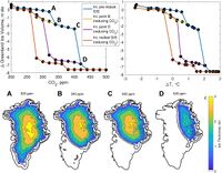 Greenland's ice sheet has a volume of ~2,900,000 cubic kilometres (696,000 cu mi). This means that if it were all to melt, global sea level would increase by ~7.4 m (24 ft) from that event alone.[122] However, it also means that it will take at least 1,000 years for the ice sheet to disappear even with very high rates of global warming,[117] and in around 10,000 years under lower rates of warming which still cross the threshold for the ice sheet's disappearance.[123][124] This threshold likely lies for between 1.7 °C (3.1 °F) and 2.3 °C (4.1 °F). Reducing the warming back to 1.5 °C (2.7 °F) or lower above preindustrial levels (such as through large-scale carbon dioxide removal) would arrest the losses, but still cause greater ultimate sea level rise than if the threshold had never been exceeded.[125] Further, 1.5 °C (2.7 °F) itself appears to commit the Greenland ice sheet to 1.4 m (4 1⁄2 ft) of sea level rise.[126]