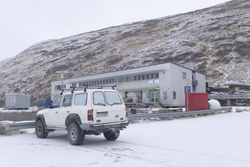 At least four scientific expedition stations and camps had been established on the ice sheet in the ice-covered central part of Greenland (indicated as pale blue in the adjacent map): Eismitte, North Ice, North GRIP Camp and The Raven Skiway. There is a year-round station Summit Camp on the ice sheet, established in 1989. The radio station Jørgen Brønlund Fjord was, until 1950, the northernmost permanent outpost in the world.