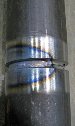 The heat-affected zone (HAZ) is a ring surrounding the weld in which the temperature of the welding process, combined with the stresses of uneven heating and cooling, alters the heat-treatment properties of the alloy. The effects of welding on the material surrounding the weld can be detrimental—depending on the materials used and the heat input of the welding process used, the HAZ can be of varying size and strength. The thermal diffusivity of the base material plays a large role—if the diffusivity is high, the material cooling rate is high and the HAZ is relatively small. Conversely, a low diffusivity leads to slower cooling and a larger HAZ. The amount of heat injected by the welding process plays an important role as well, as processes like oxyacetylene welding have an unconcentrated heat input and increase the size of the HAZ. Processes like laser beam welding give a highly concentrated, limited amount of heat, resulting in a small HAZ. Arc welding falls between these two extremes, with the individual processes varying somewhat in heat input.[53][54] To calculate the heat input for arc welding procedures, the following formula can be used: