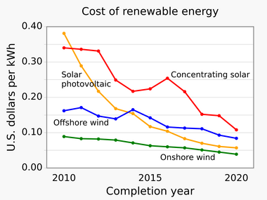 Cost: With increasingly widespread implementation of renewable energy sources, costs have declined, most notably for energy generated by solar panels.[6][7]