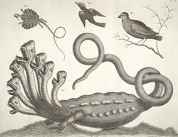 On the way, the pair stopped in Hamburg, where they met the mayor, who proudly showed them a supposed wonder of nature in his possession: the taxidermied remains of a seven-headed hydra. Linnaeus quickly discovered the specimen was a fake, cobbled together from the jaws and paws of weasels and the skins of snakes. The provenance of the hydra suggested to Linnaeus that it had been manufactured by monks to represent the Beast of Revelation. Even at the risk of incurring the mayor's wrath, Linnaeus made his observations public, dashing the mayor's dreams of selling the hydra for an enormous sum. Linnaeus and Sohlberg were forced to flee from Hamburg.[60][61]