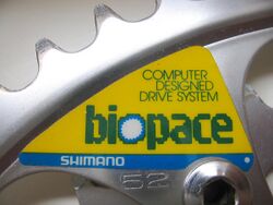 Biopace is a tradename for a type of ovoid bicycle chain ring manufactured by Shimano from 1983 to 1993[1][2] The design was intended to help overcome the "dead zone" where the crank arms are vertical and riders have little mechanical advantage.[3]