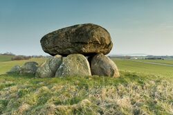 After c. 2400 groups associated with the Bell Beaker culture migrated into Jutland, bringing with them new skills in mining and sailing. They mined flint in northern Jutland for the mass production of flint daggers that were subsequently distributed to most of Scandinavia.[8] As such the period from c. 2400-1800 BC is also known as the Dagger Period.[9] Copper metallurgy was practised on a small scale from c. 2400 BC, and the shape of flint daggers imitated copper and bronze prototypes.[10] After c. 2000 BC large 'chiefly' houses similar to those found in the Unetice culture appear in south Scandinavia, indicating the development of a more ranked social organization.[11][12] 2000 BC also marks the introduction and use of bronze tools, followed by a more systematic adoption of bronze metalworking technology from 1750 BC.[13][14] The Neolithic period was followed by the Nordic Bronze Age.