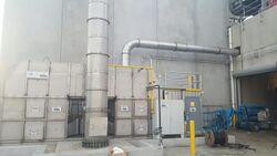 The amount of air required for complete combustion is known as the "theoretical air" or "stoichiometric air".[3] The amount of air above this value actually needed for optimal combustion is known as the "excess air", and can vary from 5% for a natural gas boiler, to 40% for anthracite coal, to 300% for a gas turbine.[4]