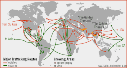 Social self-organization in international drug routes