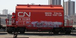A scale test car is a type of railroad car in maintenance of way service. Its purpose is to calibrate the weighing scales used to weigh loaded railroad cars. Scale test cars are of a precisely known weight so that the track scale can be calibrated against them.[1]