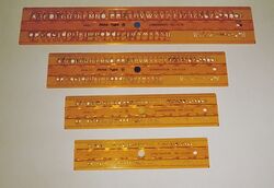 "Parallel lines" can be drawn simply by moving the T-square and running a pencil or technical pen along the T-square's edge. The T-square is used to hold other devices such as set squares or triangles. In this case, the drafter places one or more triangles of known angles on the T-square—which is itself at right angles to the edge of the table—and can then draw lines at any chosen angle to others on the page. Modern drafting tables come equipped with a drafting machine that is supported on both sides of the table to slide over a large piece of paper. Because it is secured on both sides, lines drawn along the edge are guaranteed to be parallel.[3]